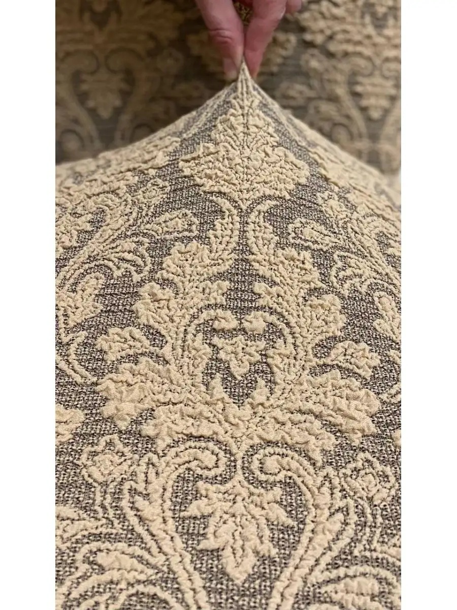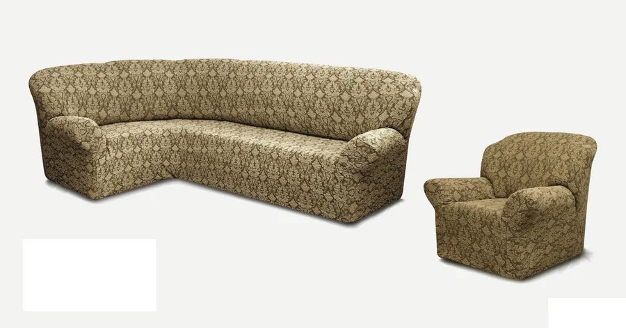 Чехол на угловой диван и кресло с без оборки,Жаккард,Кофе с молоком