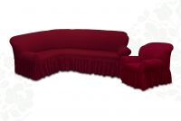 Чехол на угловой диван и кресло с оборкой,Бордовый