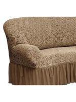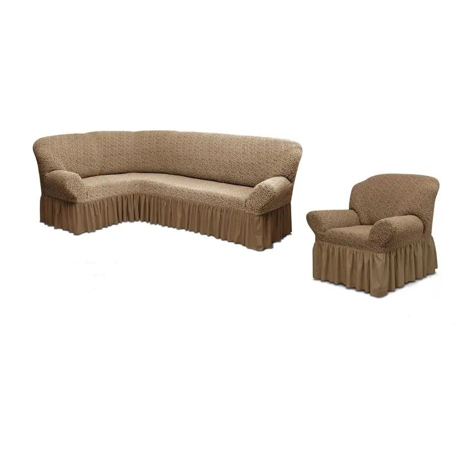 Чехол на угловой диван и кресло с оборкой Жаккард,Кофе с молоком