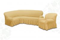 Чехол на угловой диван и кресло с оборкой,Бежевый