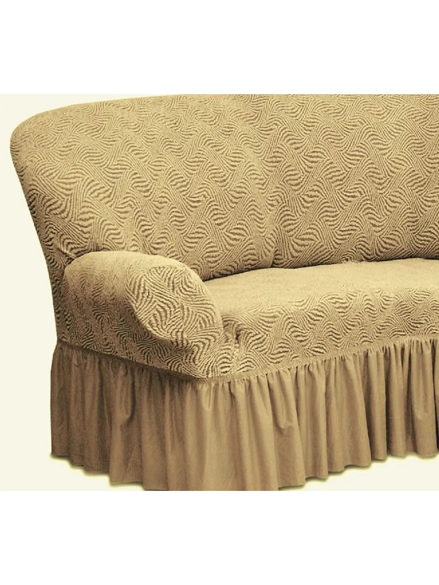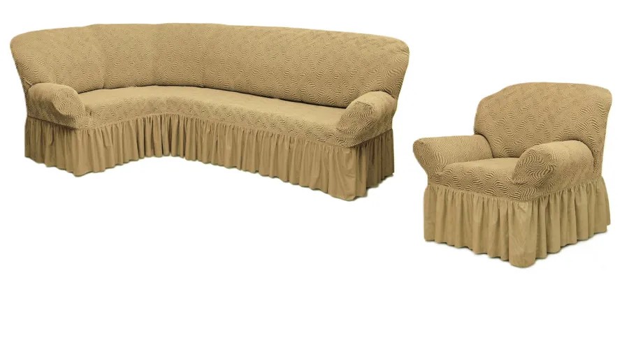 Чехол на угловой диван и кресло с оборкой Жаккард, бежевый