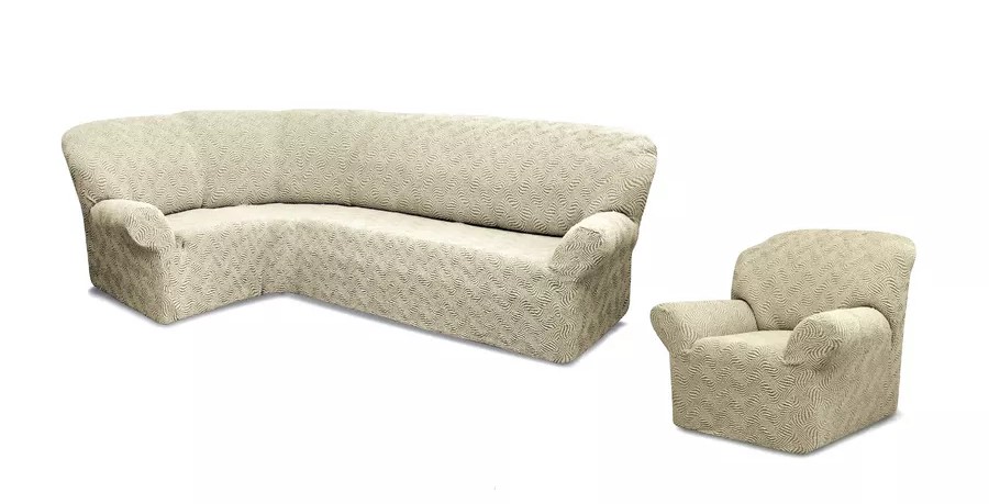 Чехол на угловой диван и кресло с без оборки,Жаккард, ванильный