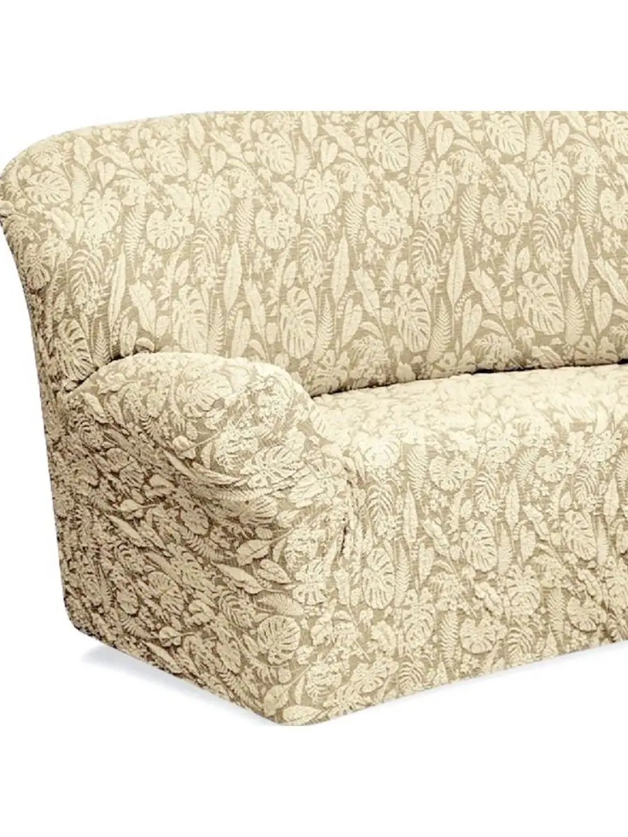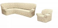 Чехол на угловой диван и кресло с без оборки,Жаккард,ванильный