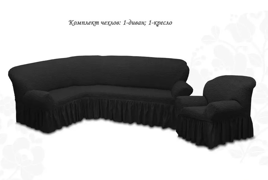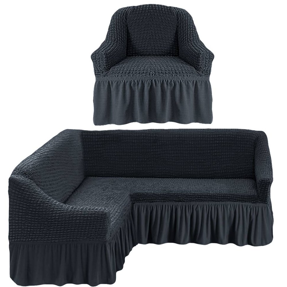 Чехол на угловой диван и кресло с оборкой,Антрацит
