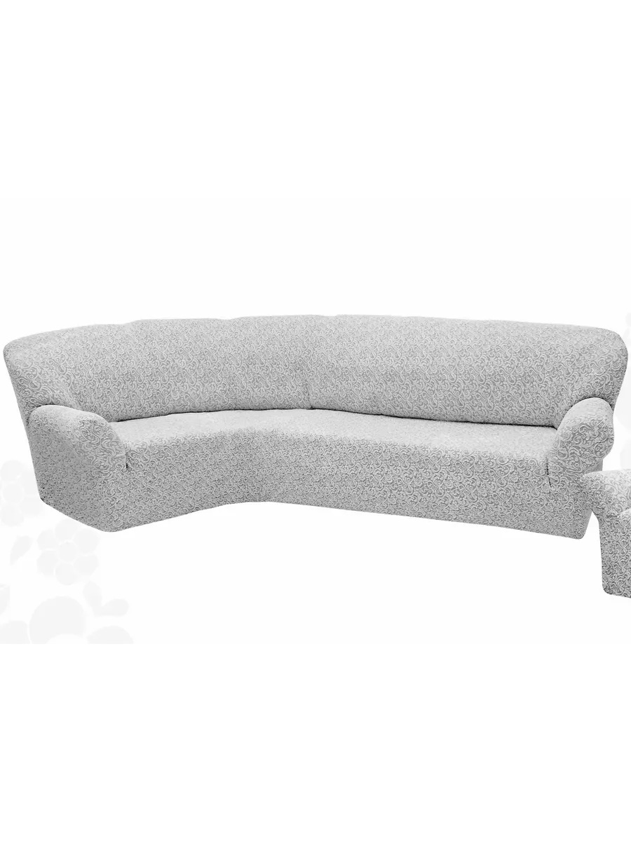 Чехол на угловой диван без оборки Жаккард,серебро