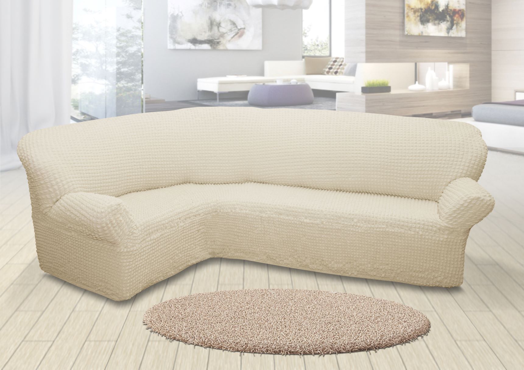 Чехол на угловой диван без оборки,Молочный