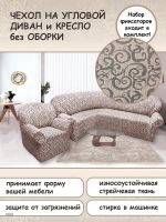 Чехол на угловой диван и кресло с без оборки,Жаккард,пыльная роза