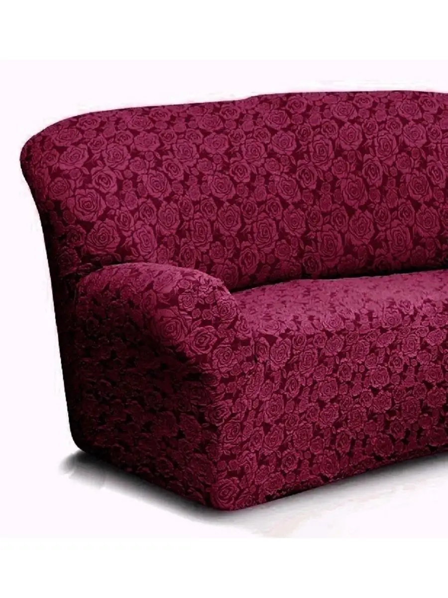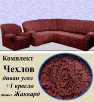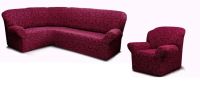 Чехол на угловой диван и кресло с без оборки,Жаккард,Бордовый
