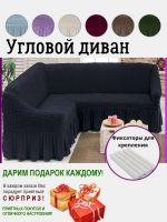 Чехол на угловой диван с оборкой, стрейч, чёрный