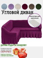 Чехол на угловой диван с оборкой, стрейч, фиолетовый