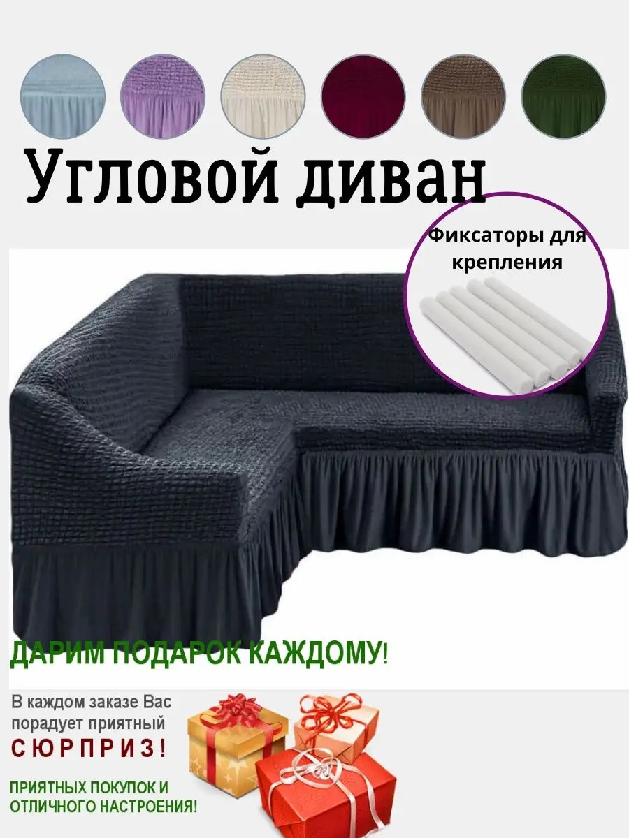 Чехол на угловой диван с оборкой, стрейч, мокрый асфальт