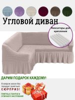 Чехол на угловой диван с оборкой, стрейч, пепел
