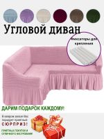 Чехол на угловой диван с оборкой, стрейч, розовый