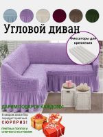 Чехол на угловой диван с оборкой, стрейч, сиреневый