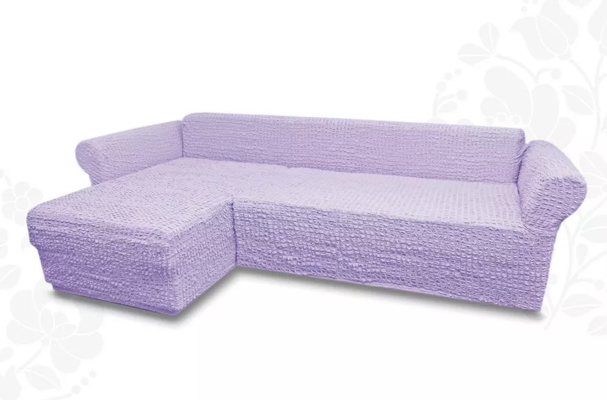 Чехол на угловой диван с оттоманкой левый угол,Сирень