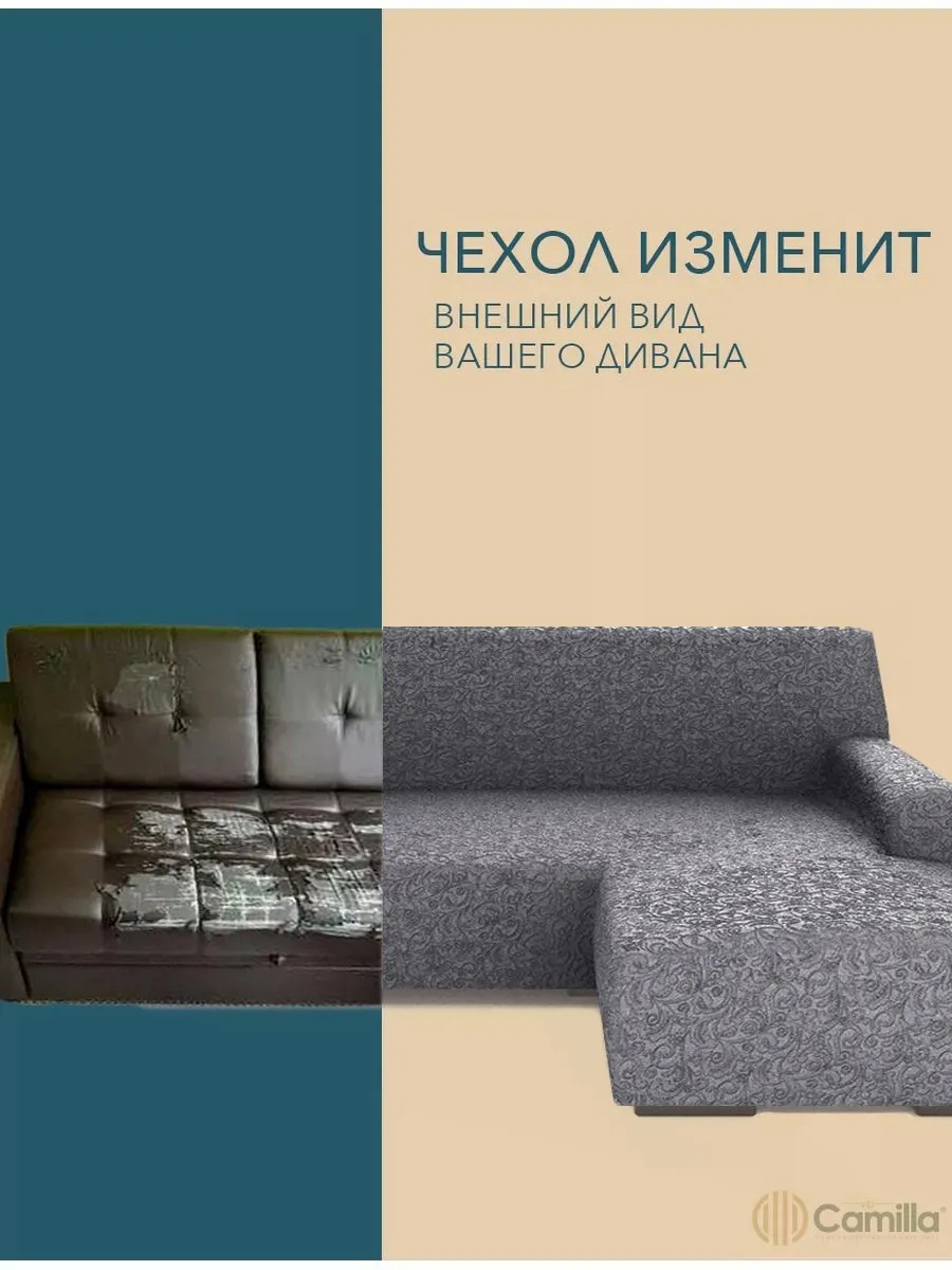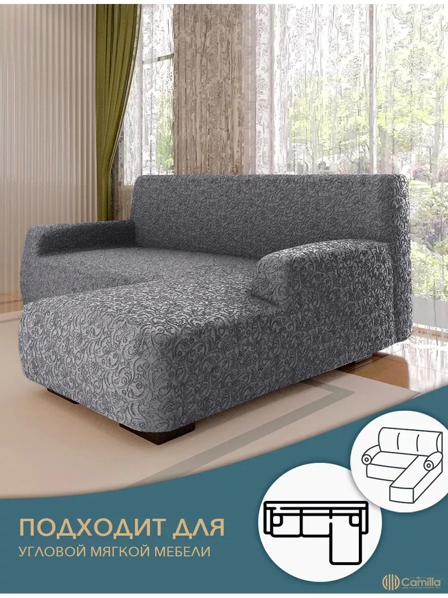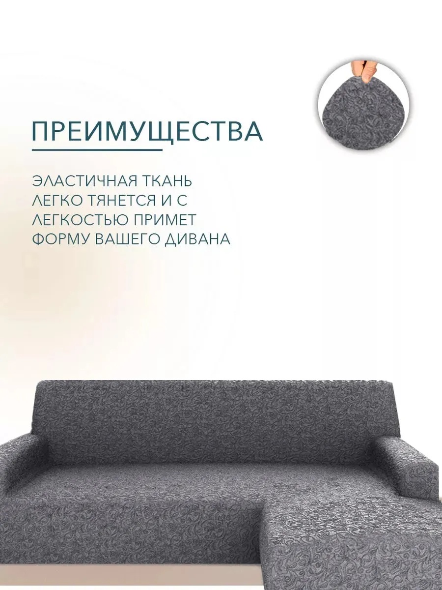 Чехол на угловой диван с оттоманкой (правая сторона), жаккард, графит