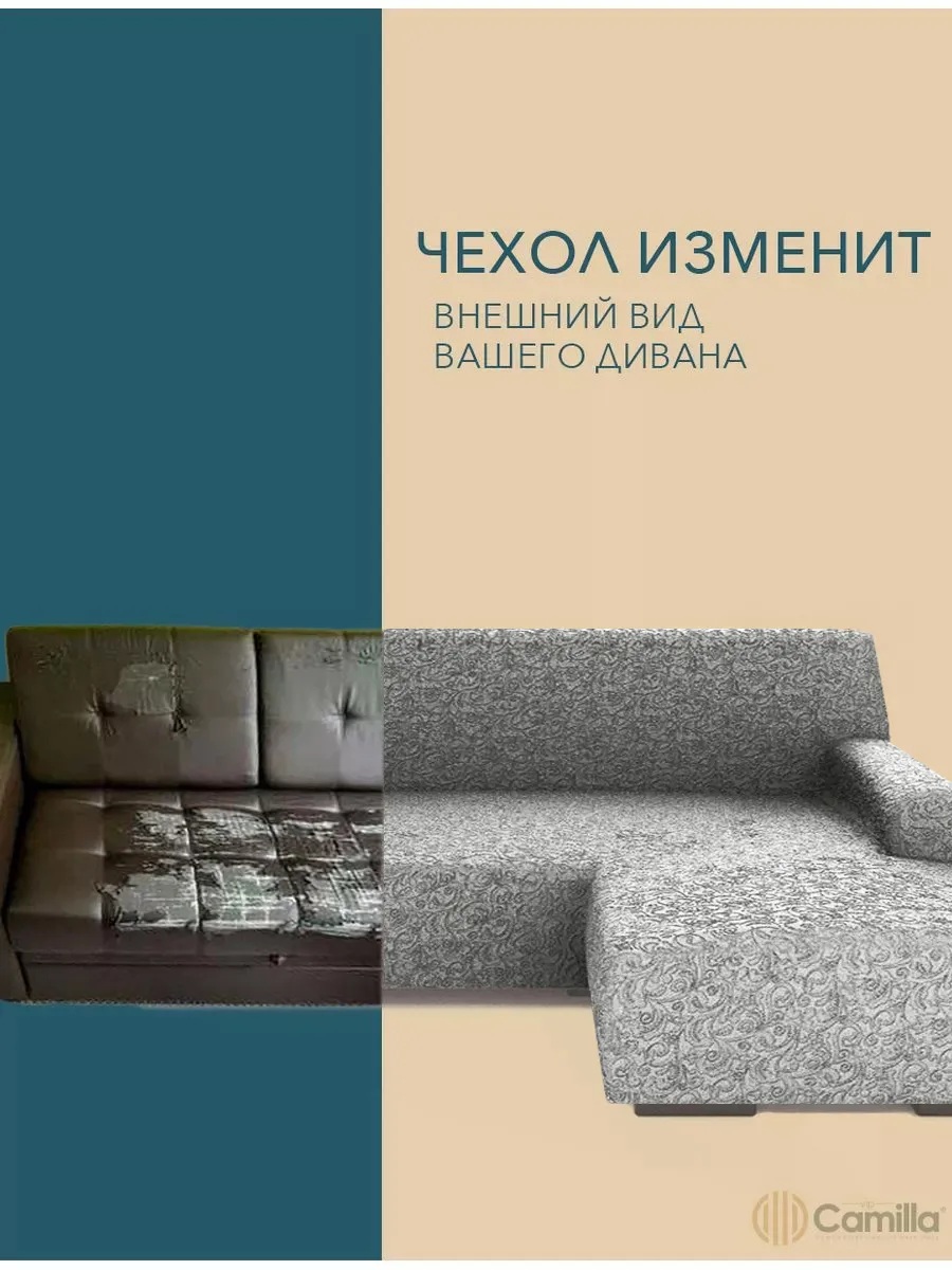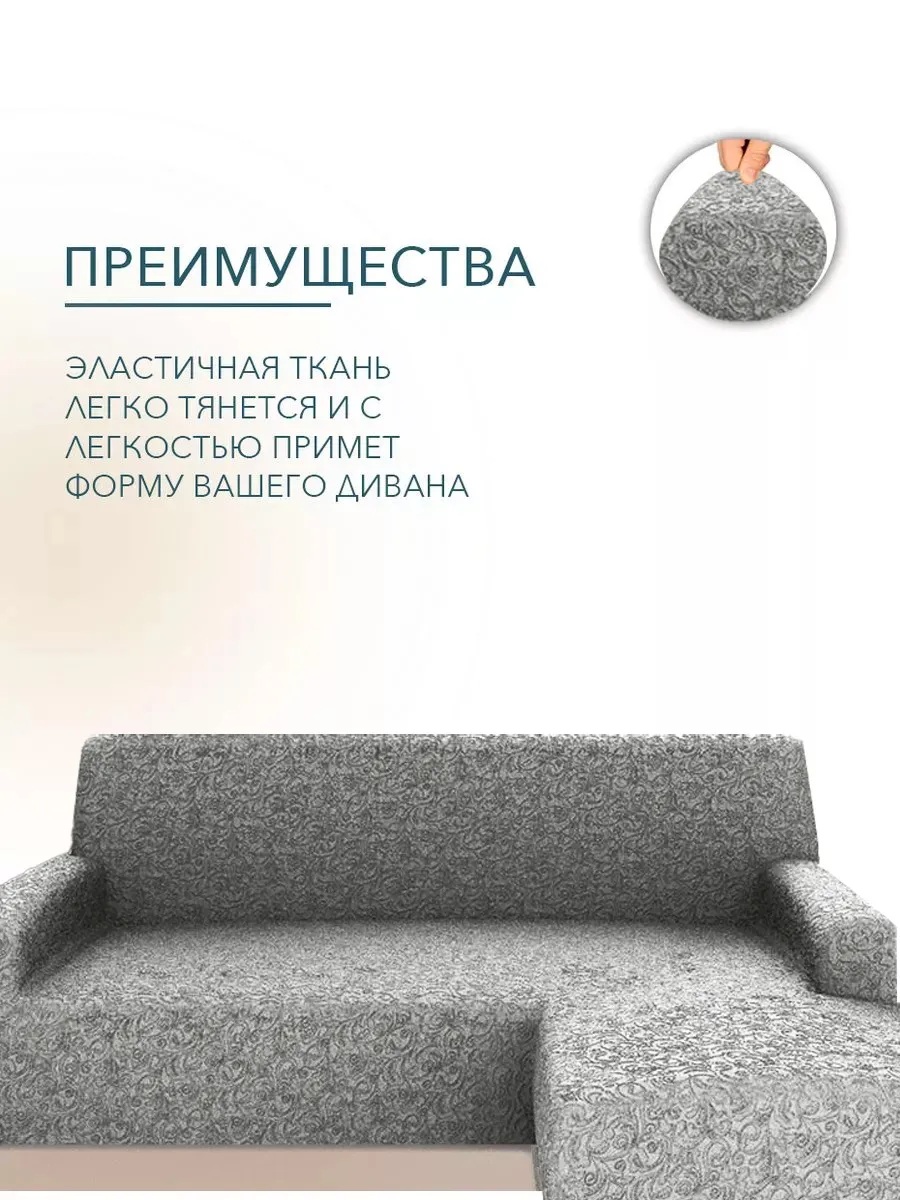Чехол на угловой диван с оттоманкой (правая сторона), жаккард, серый
