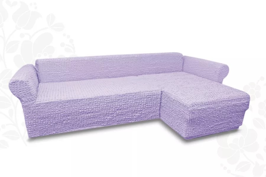 Чехол на угловой диван с оттоманкой правый угол, Сирень