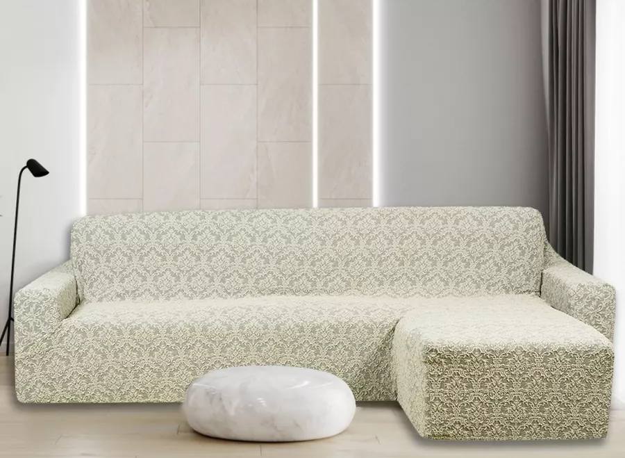 Чехол на угловой диван с оттоманкой правый угол Жаккард , шампань