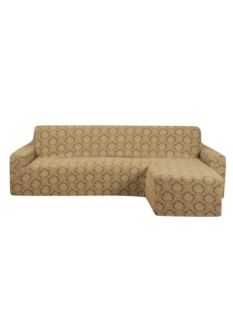 Чехол на угловой диван с оттоманкой правый угол Жаккард , светло-бежевый