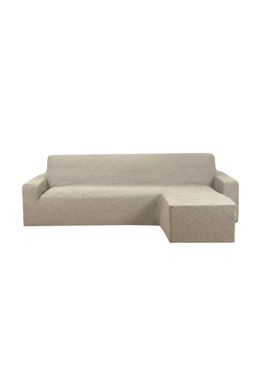 Чехол на угловой диван с оттоманкой правый угол Жаккард , кремовый