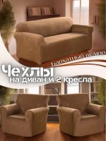 Комплект чехлов на диван и 2 кресла без оборки Бархатный велюр(плюшевый) ,медно-коричневый