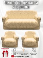 Комплект чехлов на диван и 2 кресла без оборки Бархатный Жаккард ,крем-брюле
