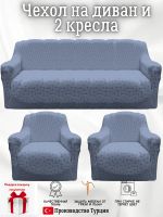 Комплект чехлов на диван и 2 кресла без оборки Бархатный Жаккард ,темно-серый