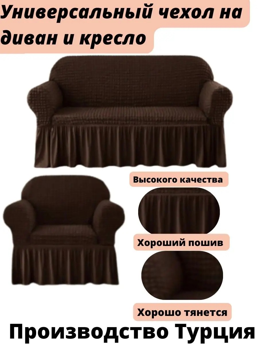 Шоколадный бархат уюта, струящийся по линиям мебели, – вот как можно охарактеризовать чехол для 3-х местного дивана и кресла с оборкой в благородном шоколадном оттенке. Этот аксессуар – не просто защита, а элемент изысканного декора, способный преобразить любое пространство.
