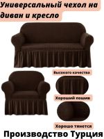 Чехол на 3-х местный диван и 1 кресло с оборкой ,шоколадный