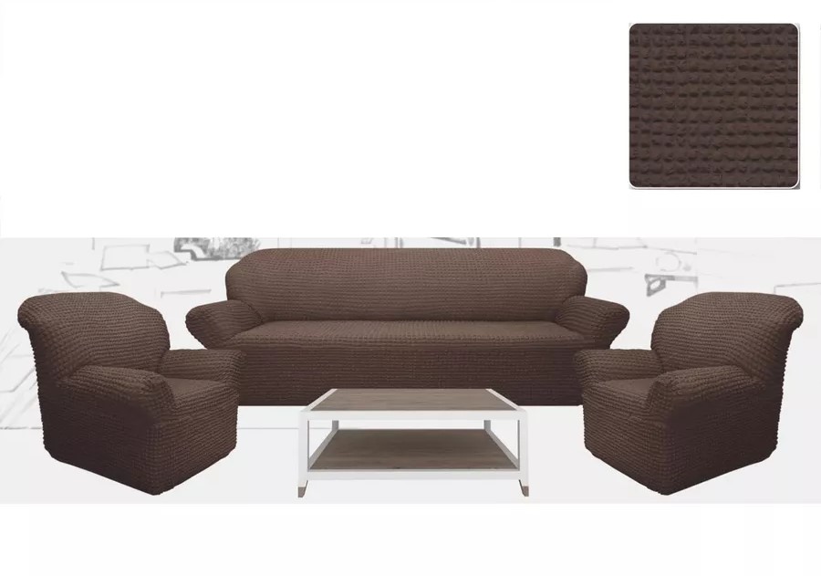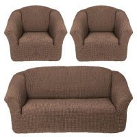 Комплект чехлов на 3-х местный диван и 2 кресла без оборки, Какао