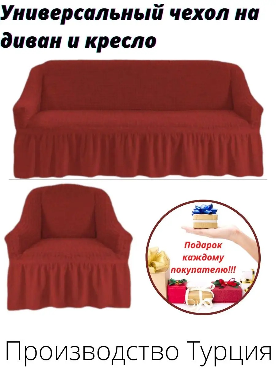 Чехол на 3-х местный диван и 1 кресло с оборкой ,красный