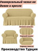 Чехол на 3-х местный диван и 1 кресло с оборкой ,зеленовато-бежевый