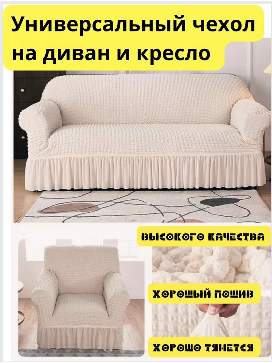 Чехол на 3-х местный диван и 1 кресло с оборкой , айвори