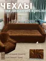 Чехол на 3-х местный диван и 1 кресло без оборки Королевский велюр ,шоколадный