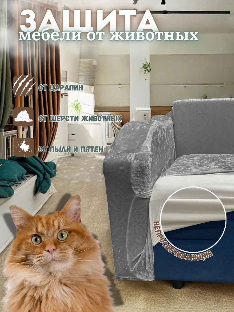 Чехол на 3-х местный диван и 1 кресло без оборки Королевский велюр , серый