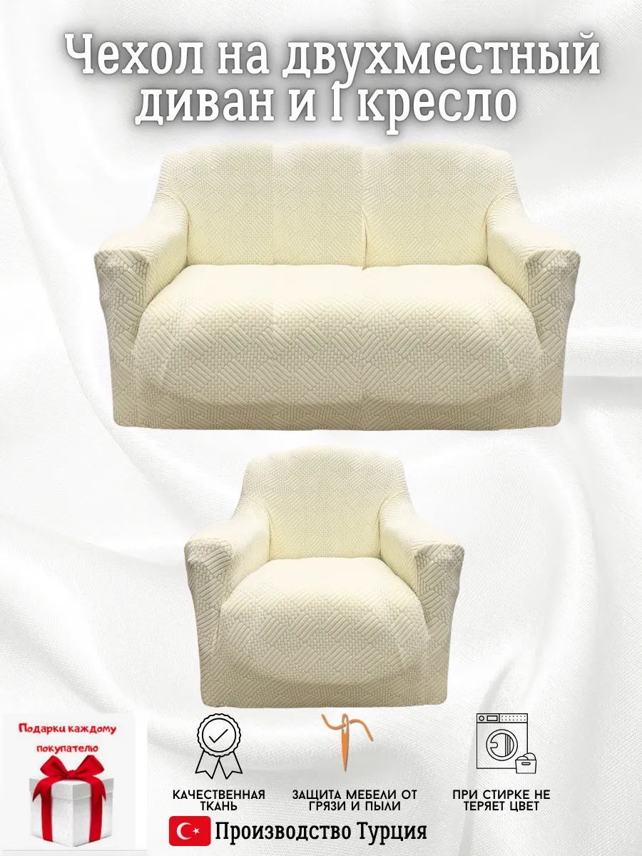 Чехол на 2-х местный диван и 1 кресло без оборки Бархатный Жаккард ,кремовый