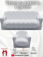 Чехол на 3-х местный диван и 1 кресло без оборки Бархатный Жаккард ,серый