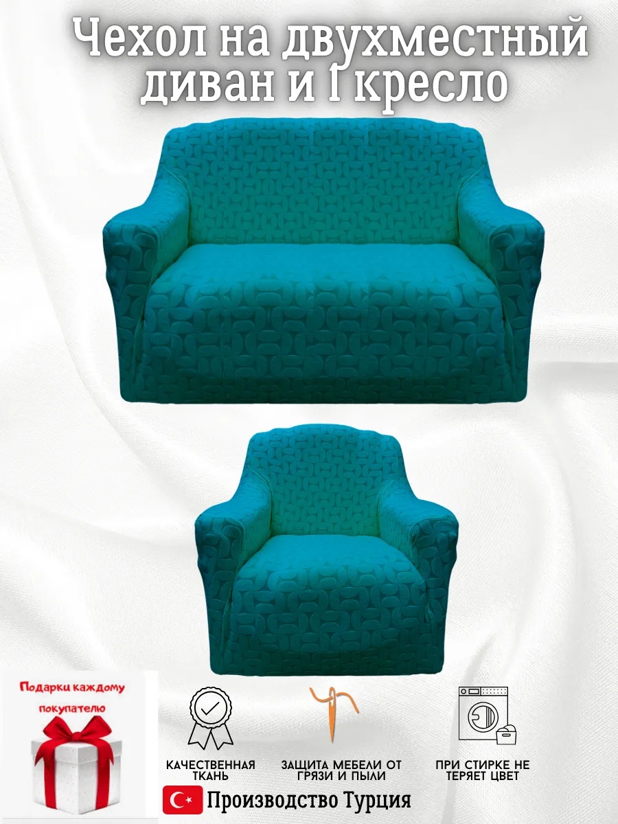 Чехол на 2-х местный диван и 1 кресло без оборки Бархатный Жаккард ,тиффани