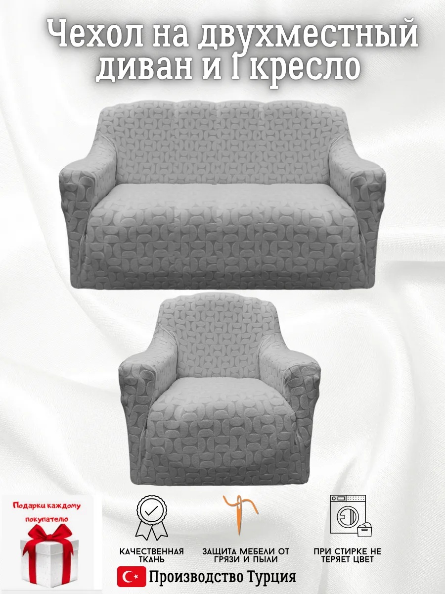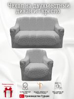 Чехол на 2-х местный диван и 1 кресло без оборки Бархатный Жаккард ,средне-серый