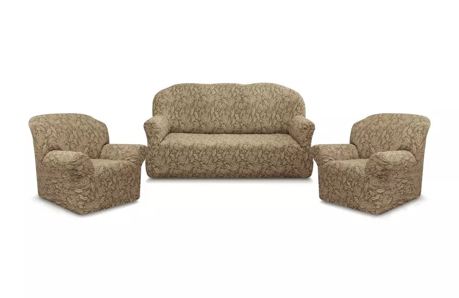 Комплект чехлов на диван и 2 кресла без оборки Жаккард ,кофе с молоком