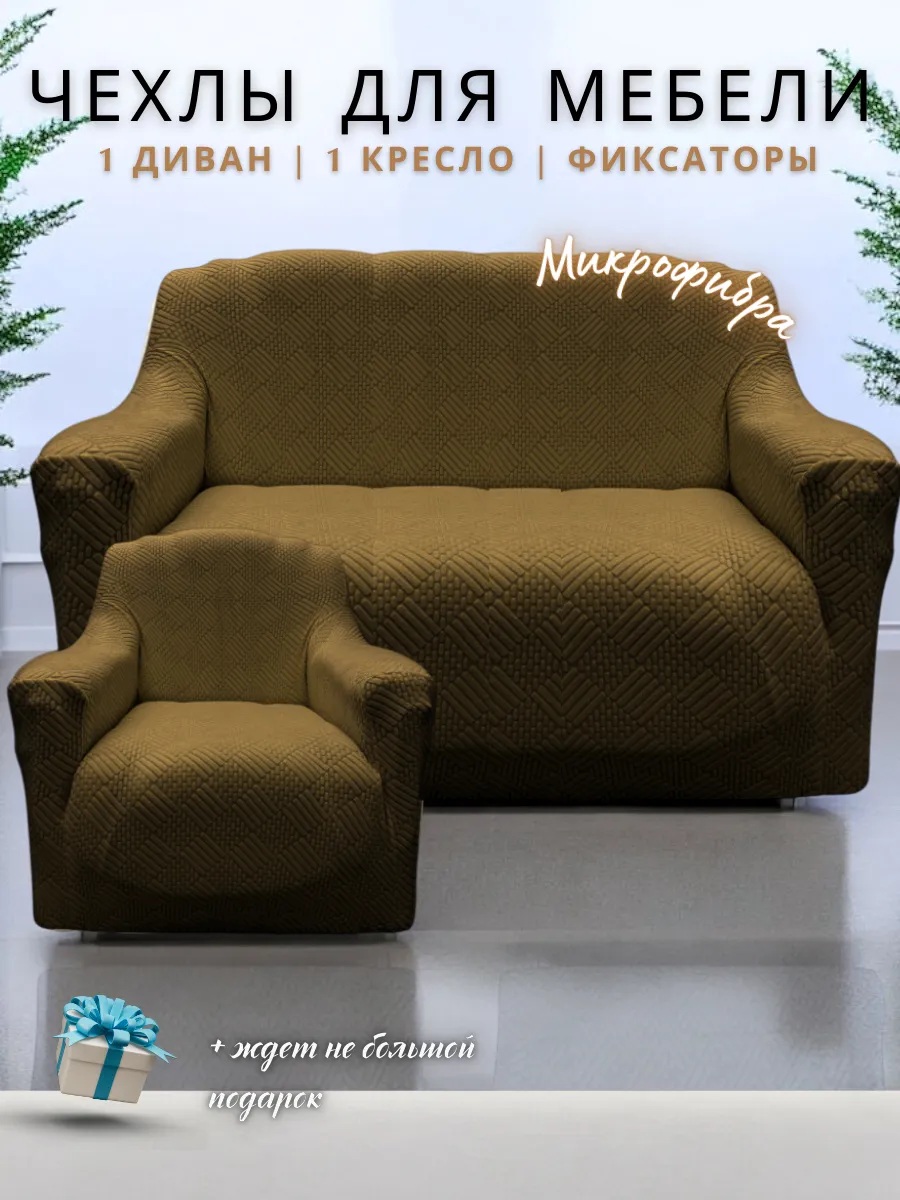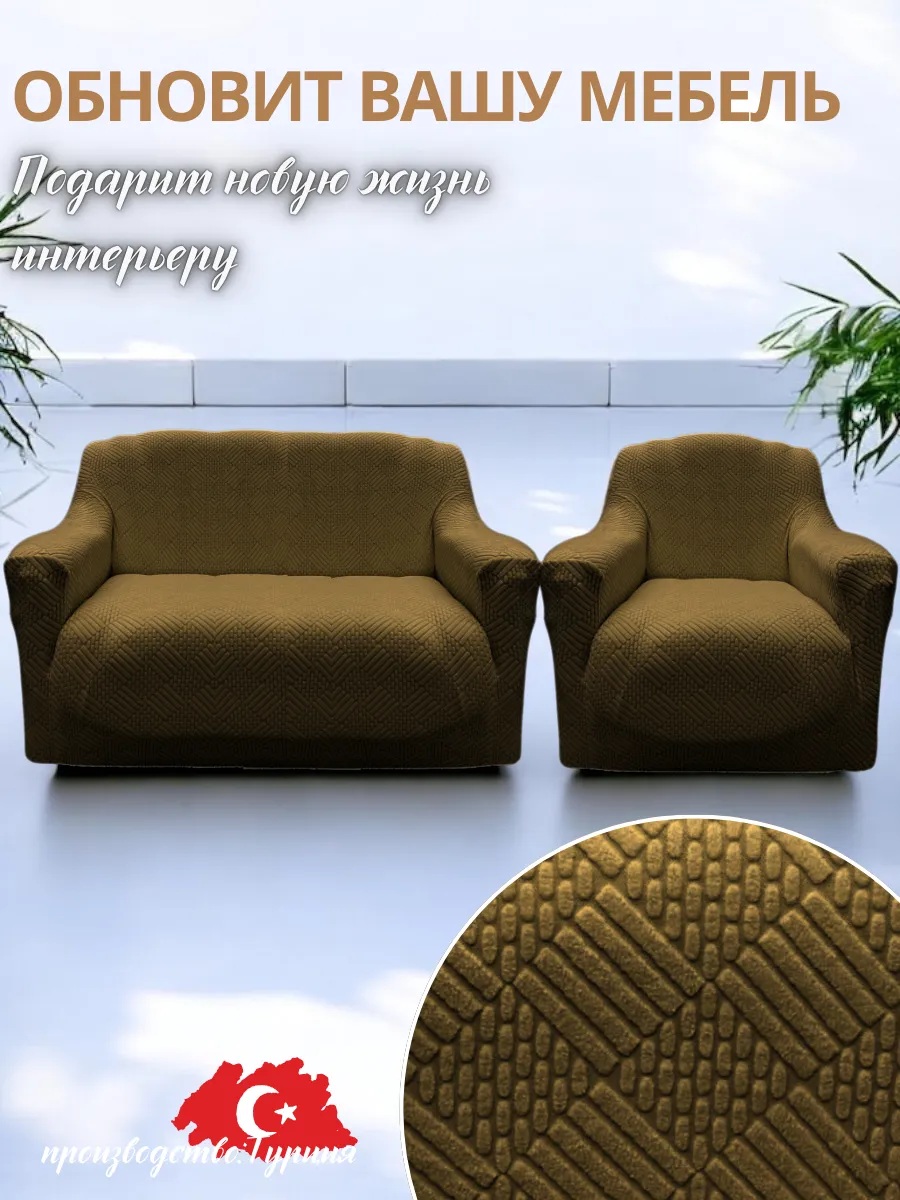 Чехол на 3-х местный диван и 1 кресло без оборки Бархатный Жаккард ,шоколадно-коричневый