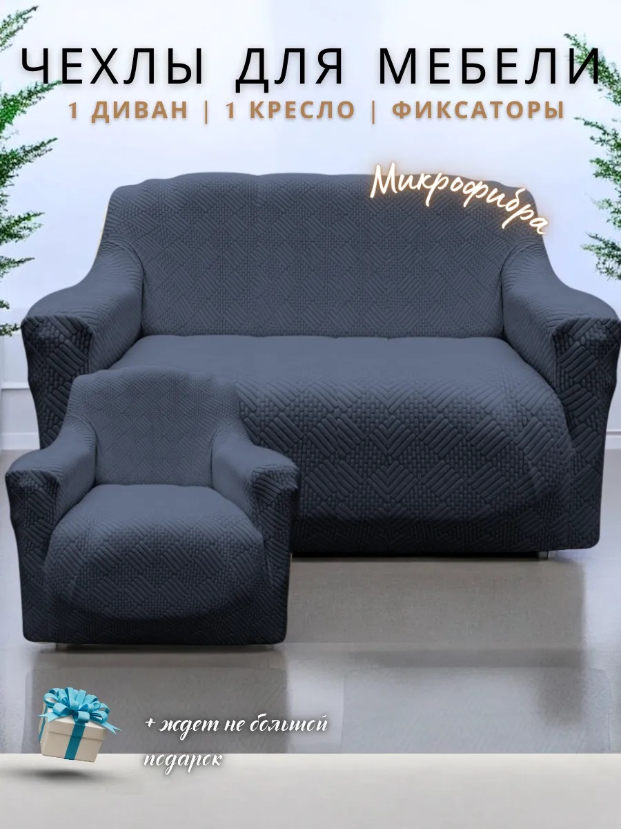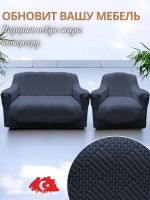 Чехол на 3-х местный диван и 1 кресло без оборки Бархатный Жаккард ,мокрый асфальт
