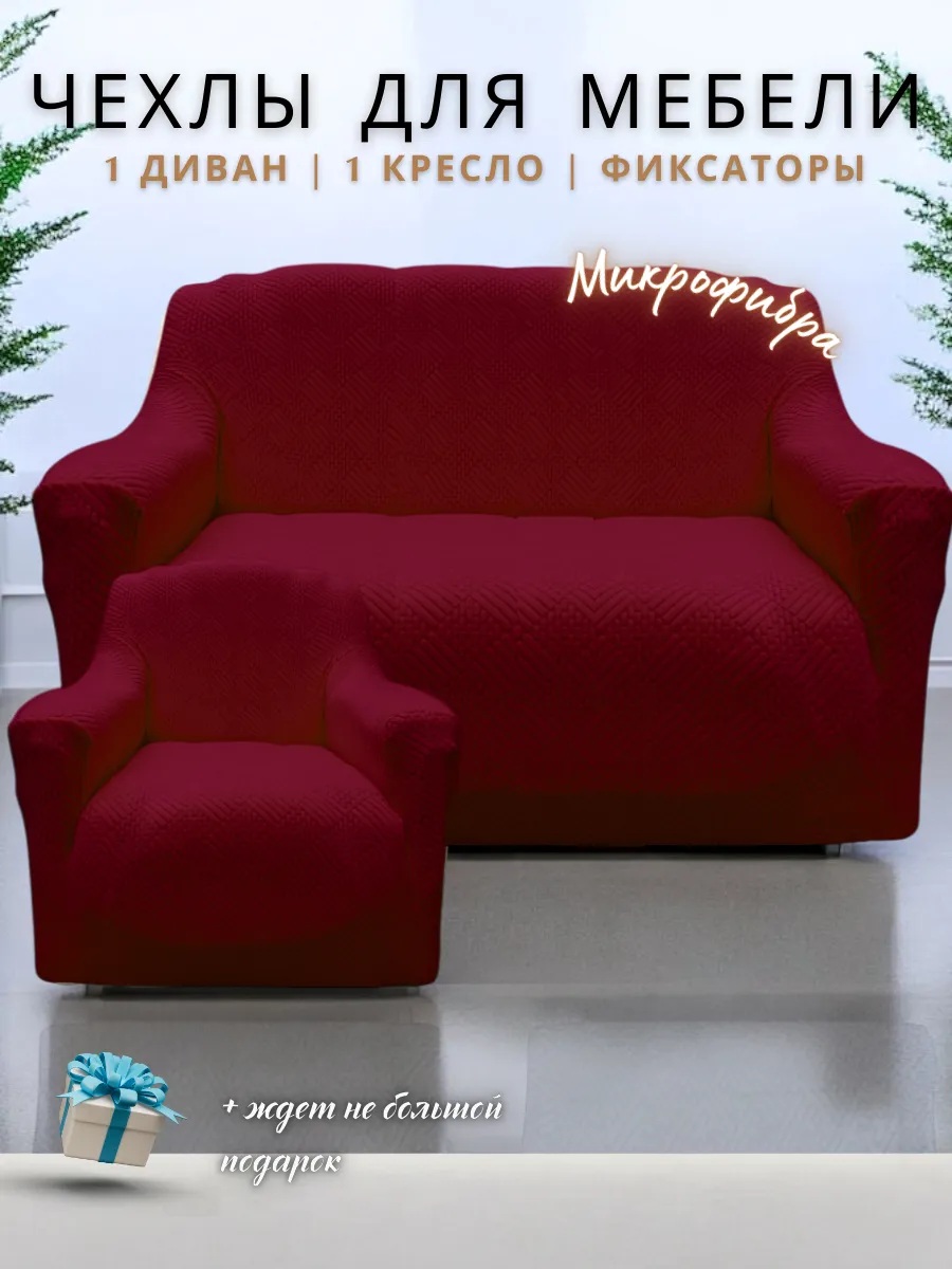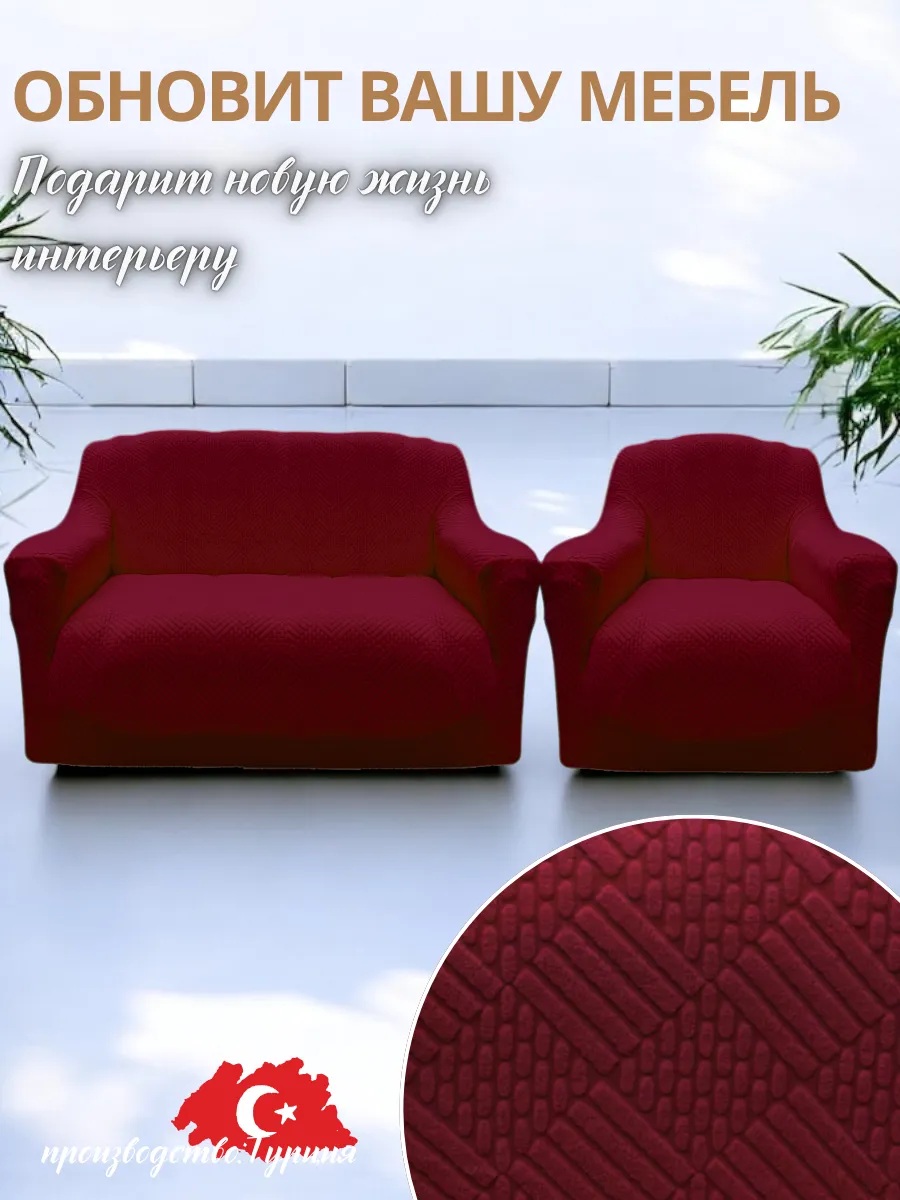 Чехол на 3-х местный диван и 1 кресло без оборки Бархатный Жаккард ,бордовый