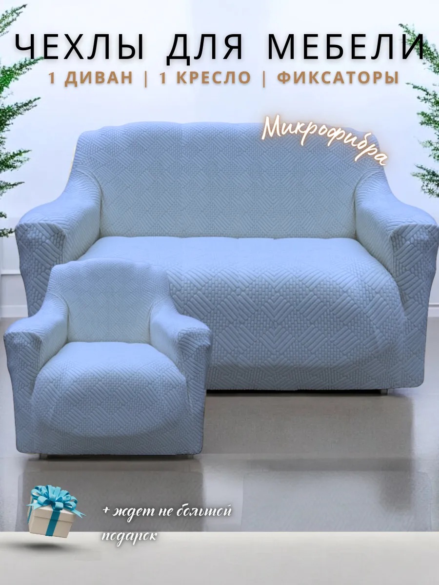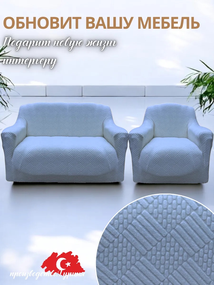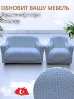 Чехол на 3-х местный диван и 1 кресло без оборки Бархатный Жаккард ,небесно-голубой