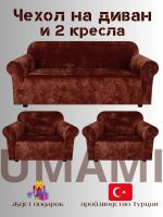 Комплект чехлов на диван и 2 кресла без оборки Бархатный Велюр ,шоколадный