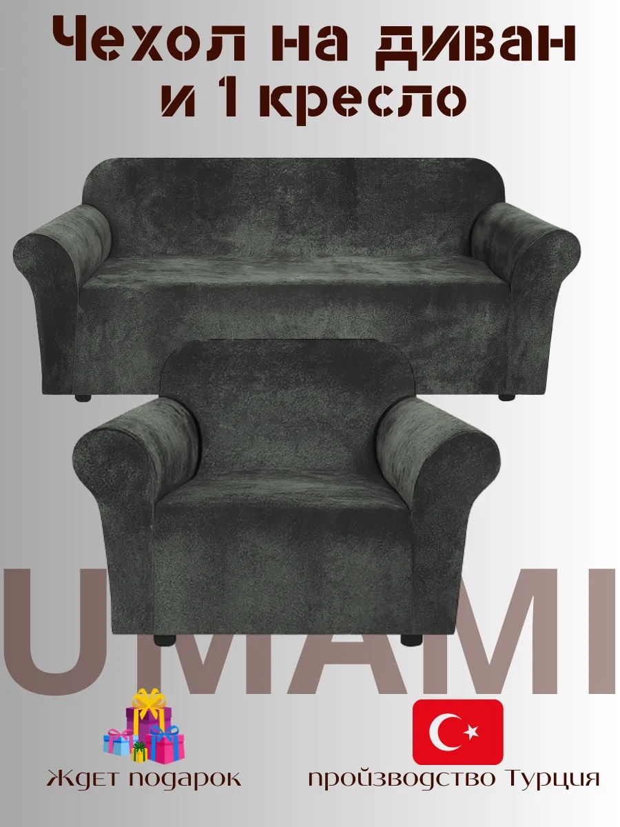Чехол на 3-х местный диван и 1 кресло без оборки Бархатный Велюр ,мокрый асфальт
