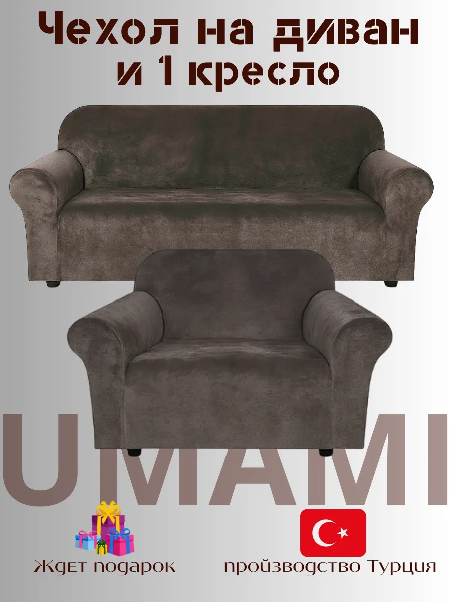 Чехол на 3-х местный диван и 1 кресло без оборки Бархатный Велюр ,темно-коричневый
