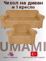 Чехол на 3-х местный диван и 1 кресло без оборки Бархатный Велюр ,медовый