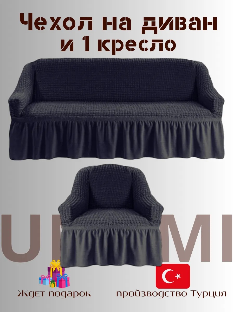 Чехол на 3-х местный диван и 1 кресло с оборкой , мокрый асфальт